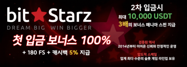 비트스타즈(BitStarz)는 2014년부터 운영된 암.호화.폐 카지노 플랫폼으로, 비.트코.인 및 다양한 디지털 자.산을 지.원하는 글로벌 온라인 슬롯 사이트입니다.