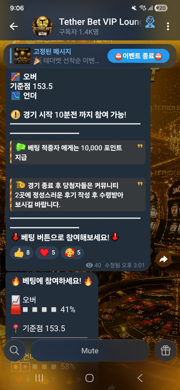 테더벳 공지방이벤트등 유저한테 퍼주는 혜택들이 너무많습니다 충전빠르고 환전 빠르고 고객센터도 친절하게 빠르게 대응 하시고 각종이벤트 이정도면 다른곳가도 못먹을정도에요 배당도높아요 스포츠