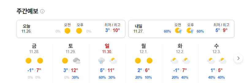 금요일 최저 온도 영하권이라네요