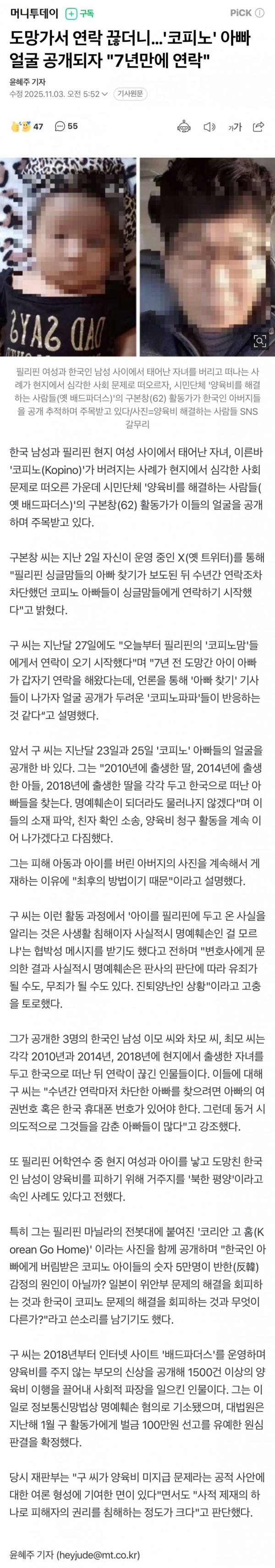 도망가서 연락 끊더니…'코피노' 아빠 얼굴 공개되자 7년만에 연락