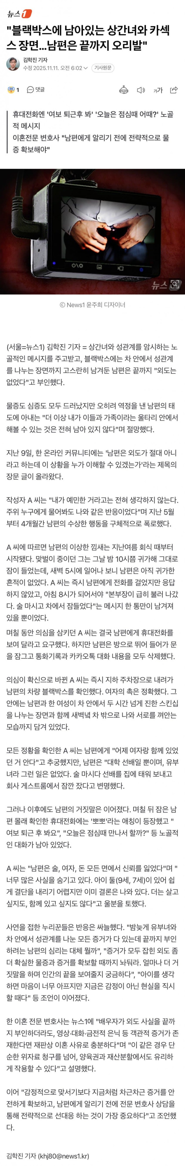 블랙박스에 남아있는 상간녀와 카섹스 장면…남편은 끝까지 오리발 작성자 정보 선풍기강풍 작성 작성일 2025.11.11 21:28 컨텐츠 정보 91 조회 1 댓글 목록 본문 ㄷㄷㄷㄷ..리버스퐁퐁.. 관련자료 이전 AI 남편 위해 메이드카페서 돈 번 고딩맘…월 200만원 쏟고 결혼까지 작성일 2025.11.11 21:32 다음 꼴 작성일 2025.11.11 21:22 댓글 1 나이키충님의 댓글 나이키충 작성일 11.11 21:32 ㄷㄷ역겹노 ㄷㄷ역겹노 로그인한 회원만 댓글 등록이 가능합니다. 목록