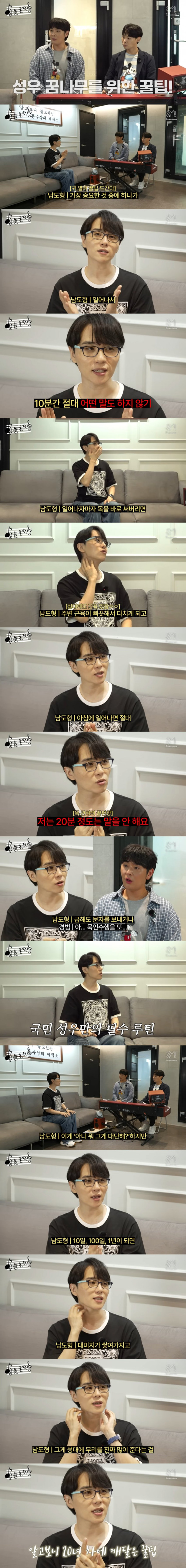 성우 남도형이 성우 지망생들에게 알려주는 목관리 꿀팁 작성자 정보 개인사업자 작성 작성일 2025.11.12 16:26 컨텐츠 정보 126 조회 1 댓글 목록 본문 아침에 일어나서 10~20분 정도는 절대 말을 하지 말 것 관련자료 이전 요즘 핫하다는 샤브 올데이 방문 작성일 2025.11.12 17:02 다음 혼밥에 대처하는 중국집의 태도 작성일 2025.11.12 16:19 댓글 1 순정마초남님의 댓글 순정마초남 작성일 11.12 16:42 근데 아침에 일어나자마자 말하는 사람이 많나? 근데 아침에 일어나자마자 말하는 사람이 많나? 로그인한 회원만 댓글 등록이 가능합니다. 목록