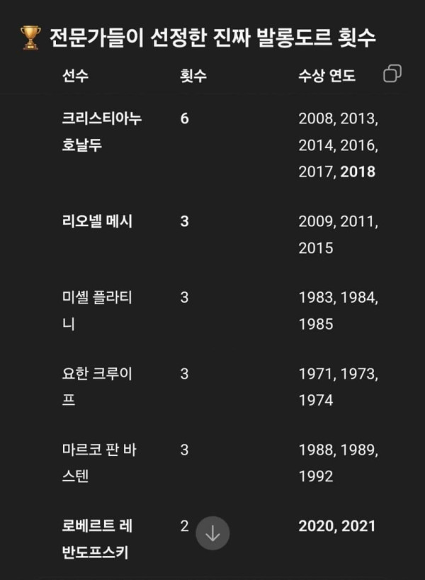 속보) 발롱도르 진짜 순위 뜸 ㄷㄷㄷㄷ