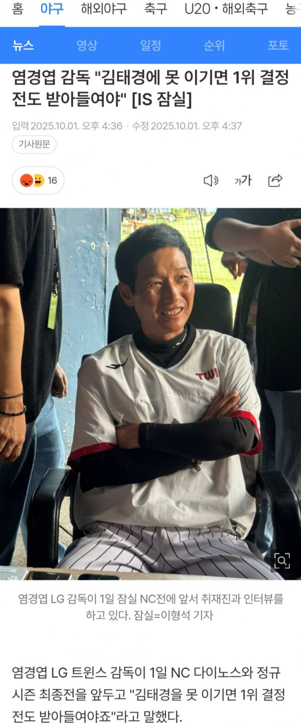 실시간) 염경엽 김태경 언급 인터뷰 사진.gisa
