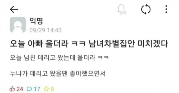 싱글벙글 남녀차별 작성자 정보 호날두꼬추 작성 작성일 2025.10.03 21:45 컨텐츠 정보 90 조회 목록 본문 게이게이야.. 관련자료 이전 흙수저가 부러웠던 금수저......jpg 작성일 2025.10.03 21:52 다음 싱글벙글 가문의 영광 작성일 2025.10.03 21:38 댓글 0 등록된 댓글이 없습니다. 로그인한 회원만 댓글 등록이 가능합니다. 목록