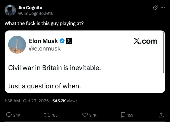 싱글벙글 영국 내전 부추기는 일론 머스크