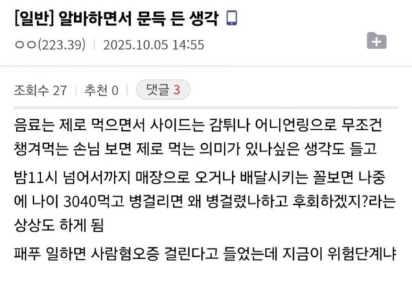 알쏭달쏭 버거킹 알바.jpg 작성자 정보 Cex노 작성 작성일 2025.10.05 21:32 컨텐츠 정보 87 조회 목록 본문 일침은 버황 ㅋㅋ 관련자료 이전 페페 실사판 작성일 2025.10.05 21:39 다음 추억추억 첫 핸드폰.jpg 작성일 2025.10.05 21:25 댓글 0 등록된 댓글이 없습니다. 로그인한 회원만 댓글 등록이 가능합니다. 목록