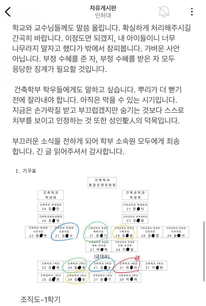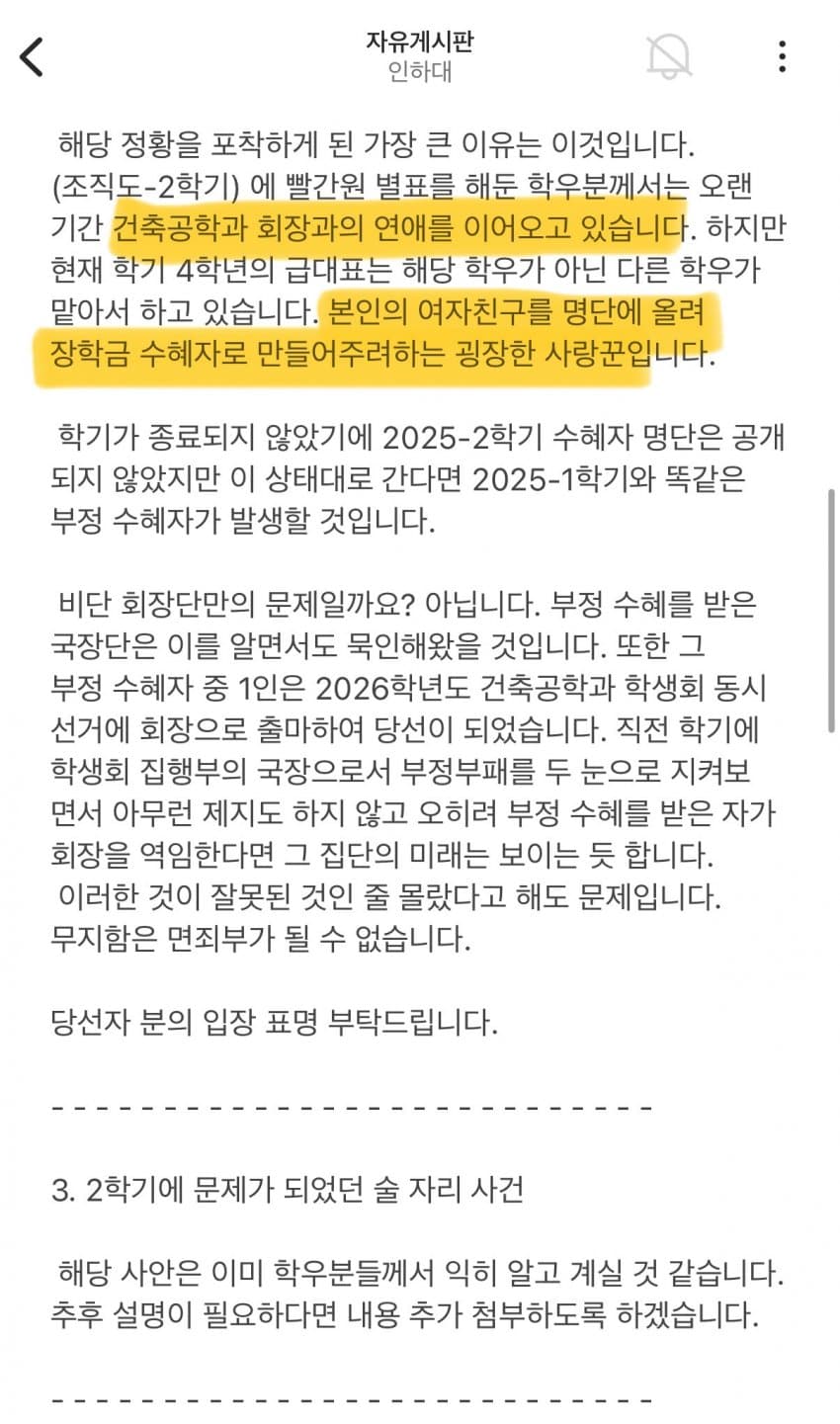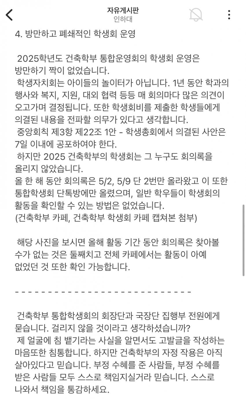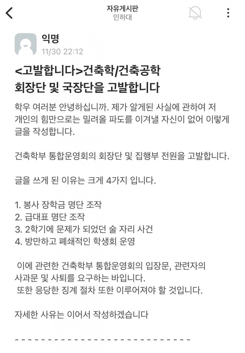 오늘자 에타에 고발된 인하대 학생회 비리사건