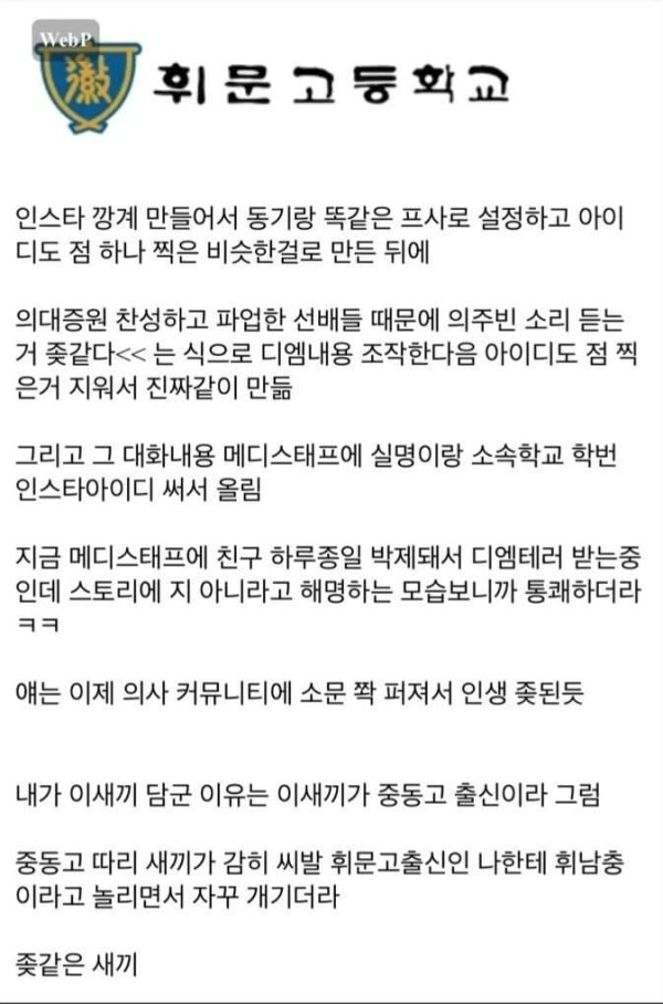 의대생인데 좆같았던 동기 하나 담궈버림 작성자 정보 히히오줌발사 작성 작성일 2025.10.30 23:25 컨텐츠 정보 167 조회 1 댓글 목록 본문 "중동고따리가 감히 휘문고출신인 나한테 개겨?" 관련자료 이전 싱글벙글 막나가는 코난 작성일 2025.10.30 23:26 다음 학비가 모자란 아들 작성일 2025.10.30 23:20 댓글 1 나는보스님의 댓글 나는보스 작성일 2025.10.30 23:55 8학군 그들의 싸움 8학군 그들의 싸움 로그인한 회원만 댓글 등록이 가능합니다. 목록