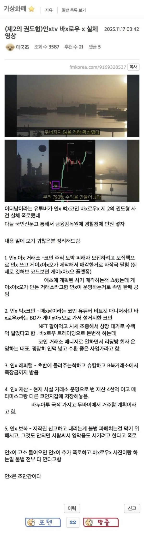 인범근황 작성자 정보 웃어봐라 작성 작성일 2025.11.18 13:17 컨텐츠 정보 34 조회 1 댓글 목록 본문 조희팔 되버림 ㄷㄷ 관련자료 이전 제로지 평단 10,120 작성일 2025.11.18 13:25 다음 성형에 1억4천 쓴 트랜스젠더…"전 남친에 속이고 5년 교제" 충격 작성일 2025.11.18 13:04 댓글 1 알파메일님의 댓글 알파메일 작성일 11.18 13:26 ㅅㅂ 잡코인 물려서 ㅈ같은데 저새낀 존나벌었네 ㅅㅂ 잡코인 물려서 ㅈ같은데 저새낀 존나벌었네 로그인한 회원만 댓글 등록이 가능합니다. 목록