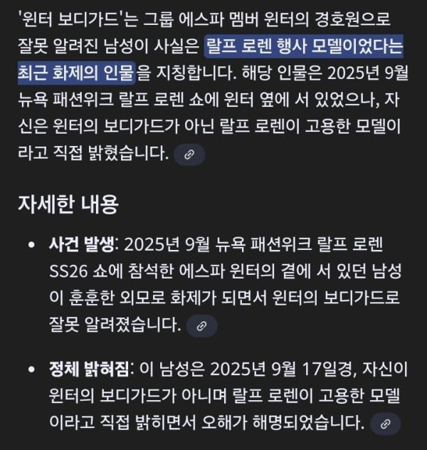 잘생겼다고 화제된 윈터 보디가드 정체 작성자 정보 국평34평 작성 작성일 2025.10.08 22:58 컨텐츠 정보 256 조회 목록 본문 알고보니 그냥 랄프로렌에서 고용한 모델이었음 관련자료 이전 변태적인 결혼식을 올린 죄로 체포된 북한 사람들 작성일 2025.10.08 23:19 다음 87세 할아버지가 건강을 되찾은 방법 작성일 2025.10.08 22:51 댓글 0 등록된 댓글이 없습니다. 로그인한 회원만 댓글 등록이 가능합니다. 목록