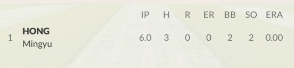 홍민규 일본전 6이닝 무실점