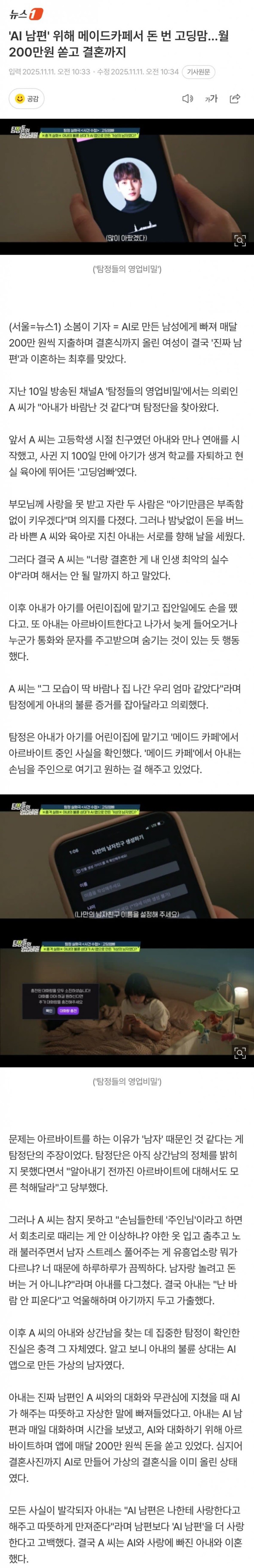 AI 남편 위해 메이드카페서 돈 번 고딩맘…월 200만원 쏟고 결혼까지