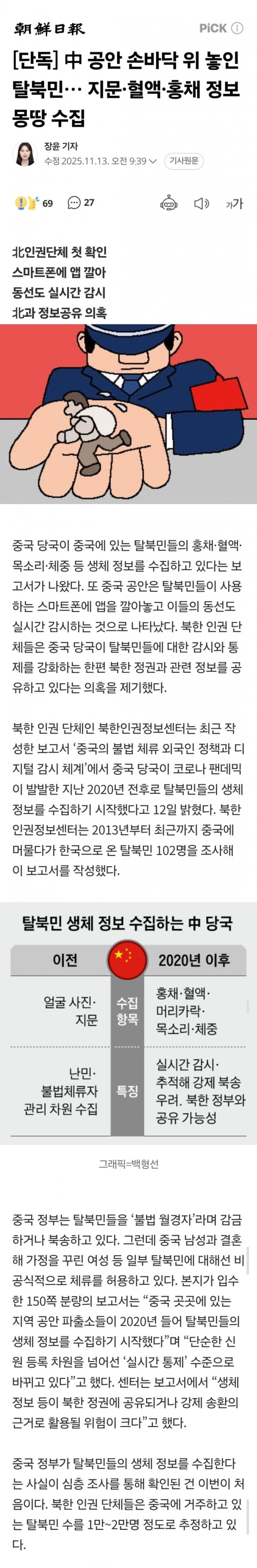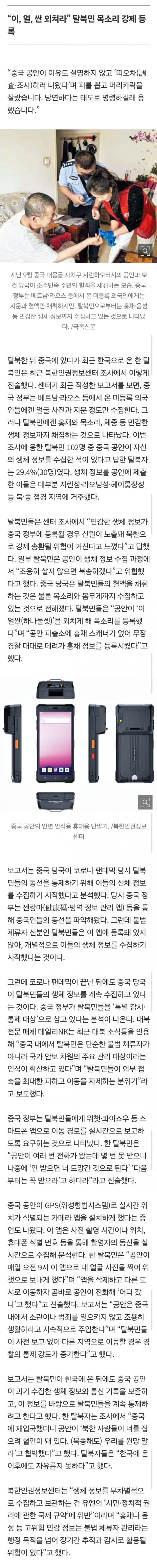 공안 손바닥 위 놓인 탈북민…지문·혈액·홍채 몽땅 수집