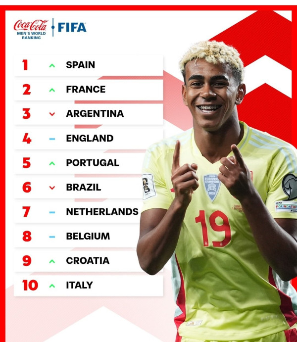스페인, 2014년 이후로 11년만에 피파랭킹 1위 탈환.