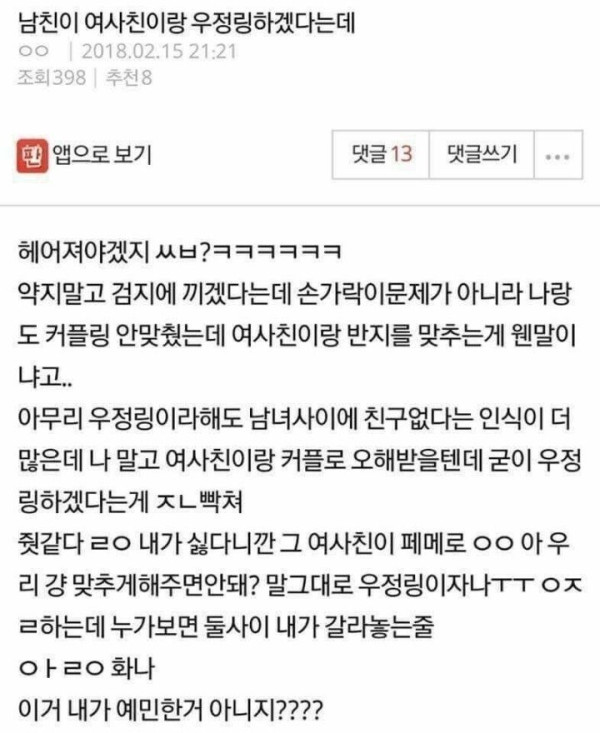 남친이 여사친이랑 우정링을 하겠대