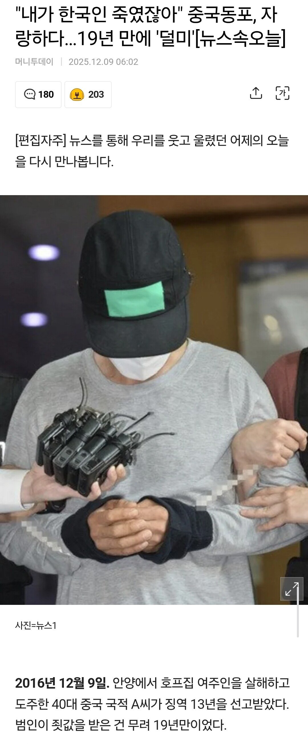 "내가 한국인 죽였잖아" 중국동포, 자랑하다 19년만에 검거