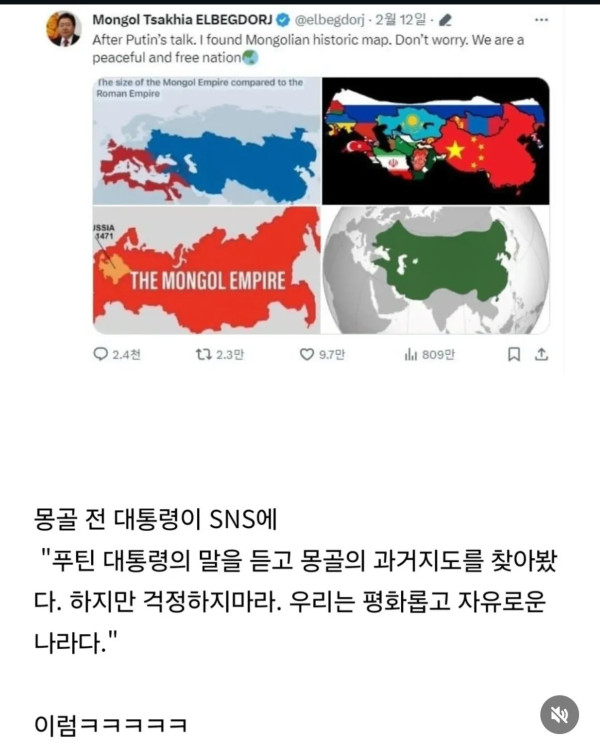 그러고보니 러시아는 몽골계라 봐야하나 그럼