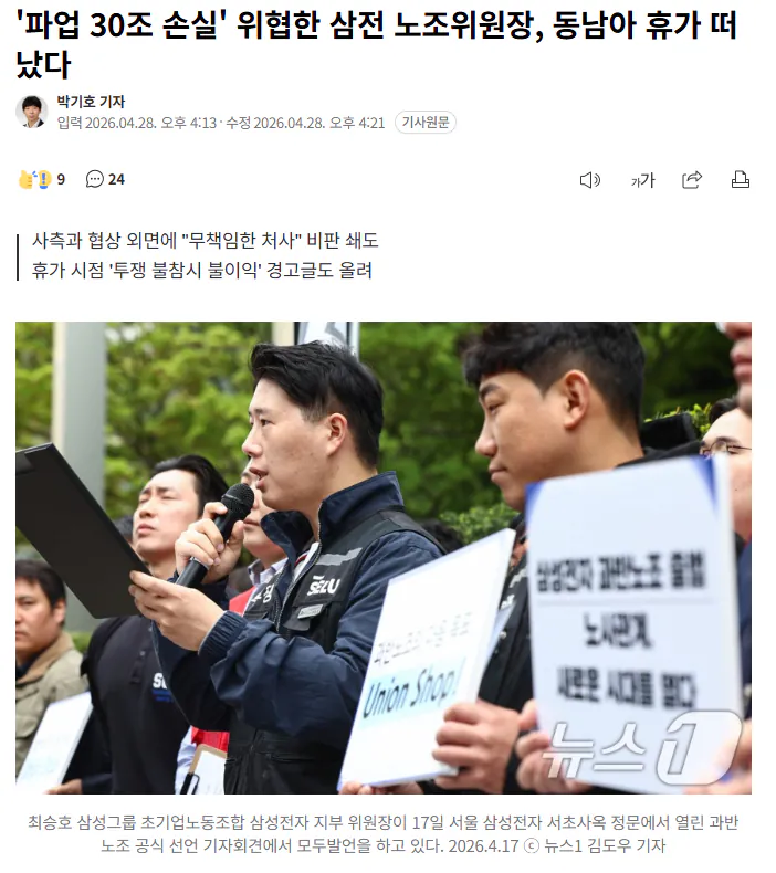 동남아로 휴가 떠난 총파업 예고했던 노조위원장