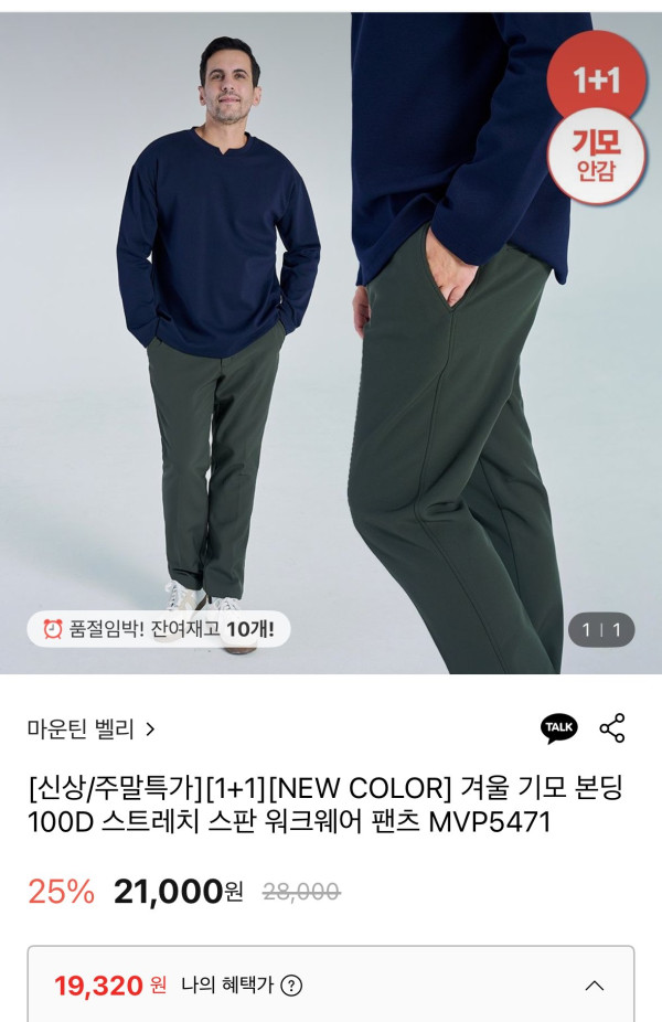 롯데온] 마운틴 벨리 겨울 기모 본딩 100D 스판 작업바지 2개 (19,320원) (0원)