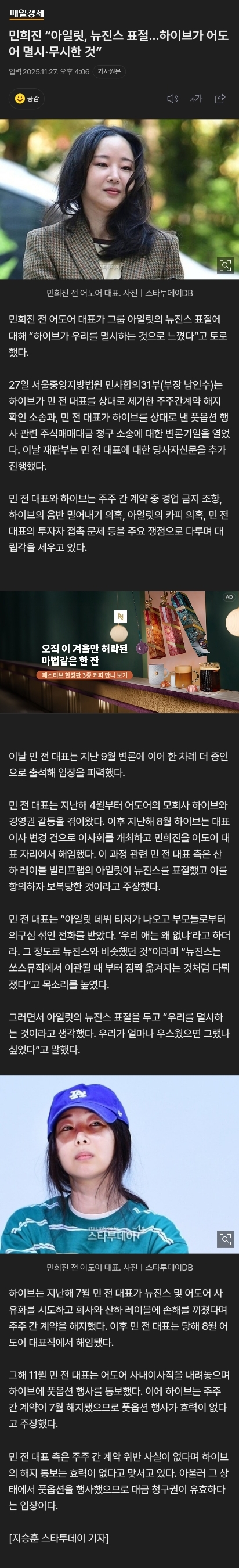민희진 “아일릿, 뉴진스 표절…또 언급 '260억 풋옵션' 변론기일 추가 내용