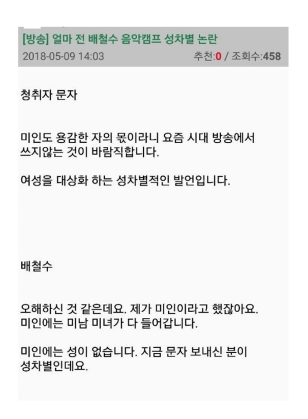 배철수 음악캠프 성차별 논란