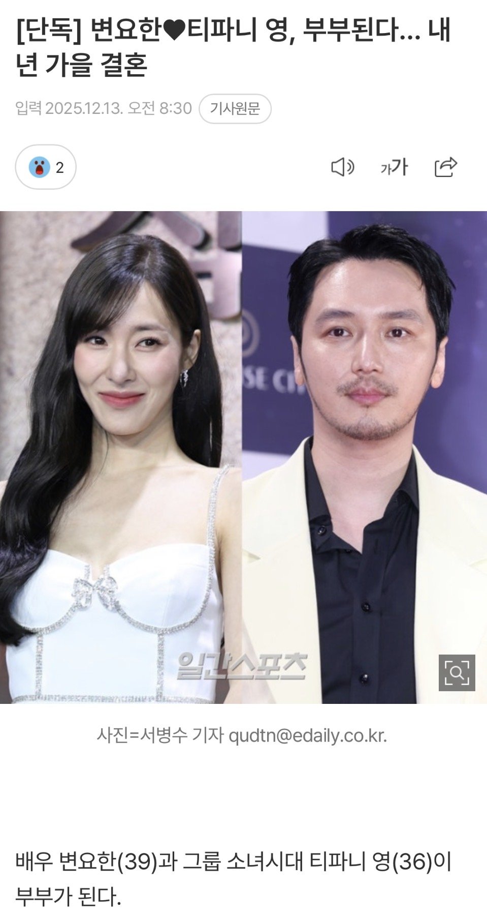 변요한 + 소녀시대 티파티 결혼한다네요