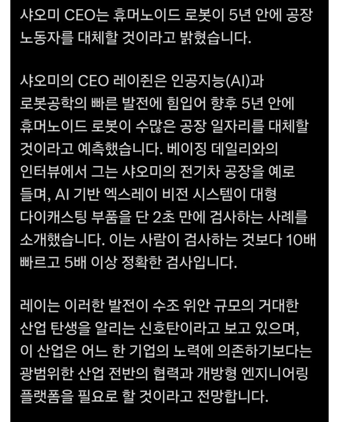 샤오미 회장 “5년안에 모든 제조업 노동자 대체”