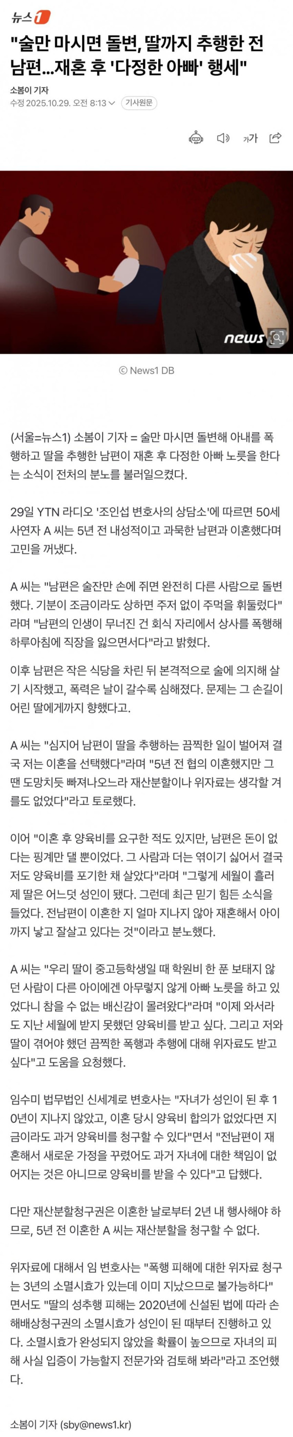 술만 마시면 돌변, 딸까지 추행한 전 남편…재혼 후 다정한 아빠 행세