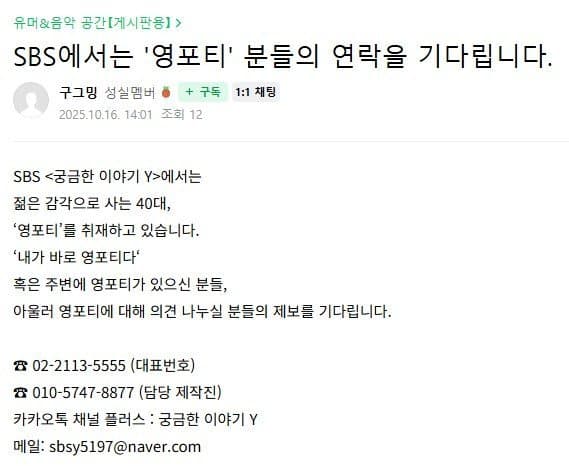 싱글벙글 궁금한 이야기 Y 영포티 모집중