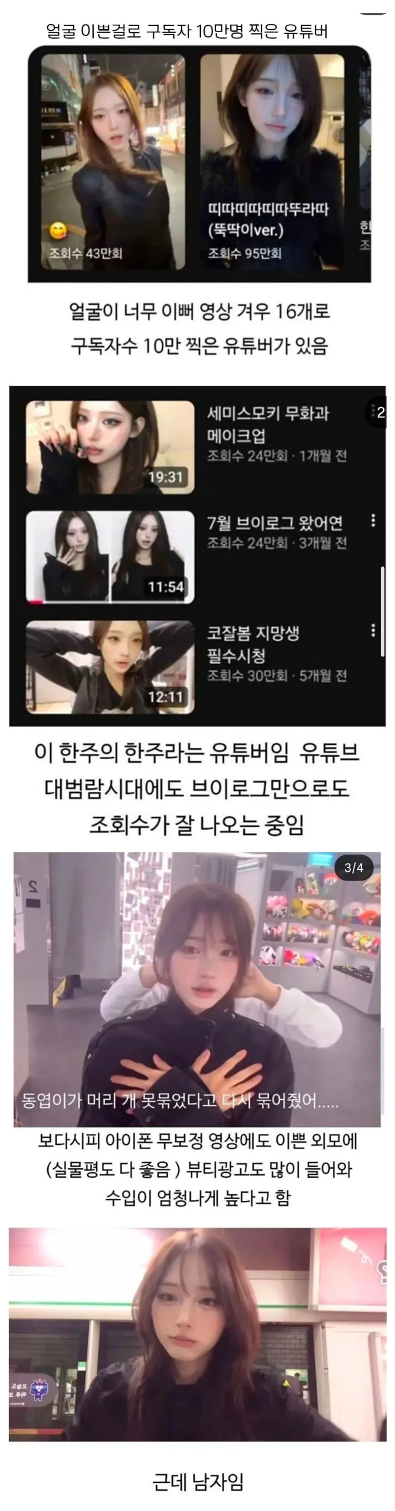얼굴 이쁜걸로 구독자 10만찍은 유튜버 정체