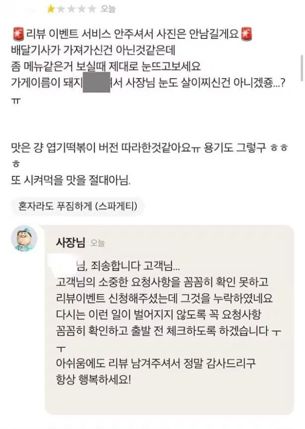 오싹오싹 리뷰이벤트를 받지 못한 손님