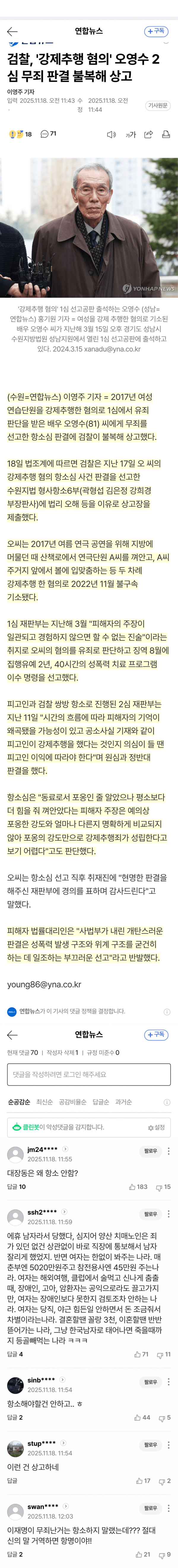 오징어게임 오영수 항소심 무죄 선고에…검찰 상고