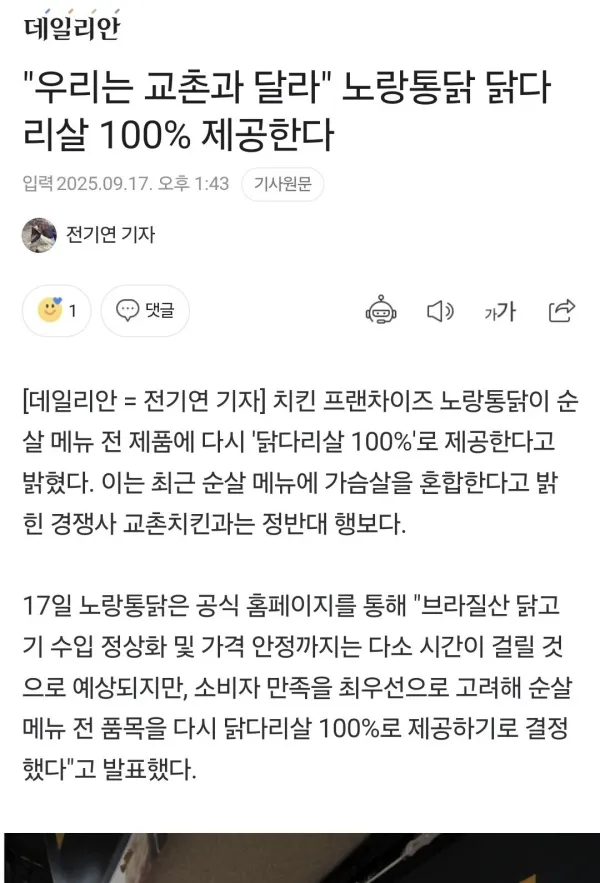 이때다싶어 교촌과 반대로 가는 노랑통닭