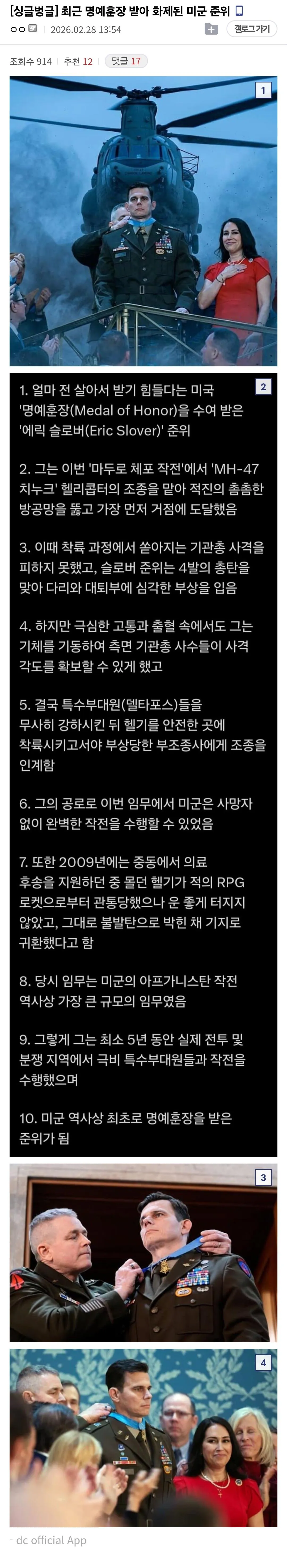이번에 최고 훈장 받은 미군 ㄷㄷㄷㄷ
