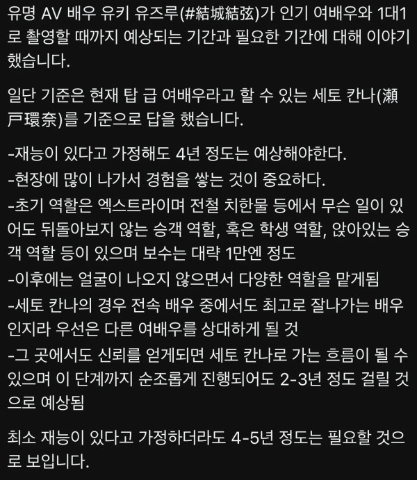 인기 AV 여배우와 1:1 촬영하는데 걸리는 시간