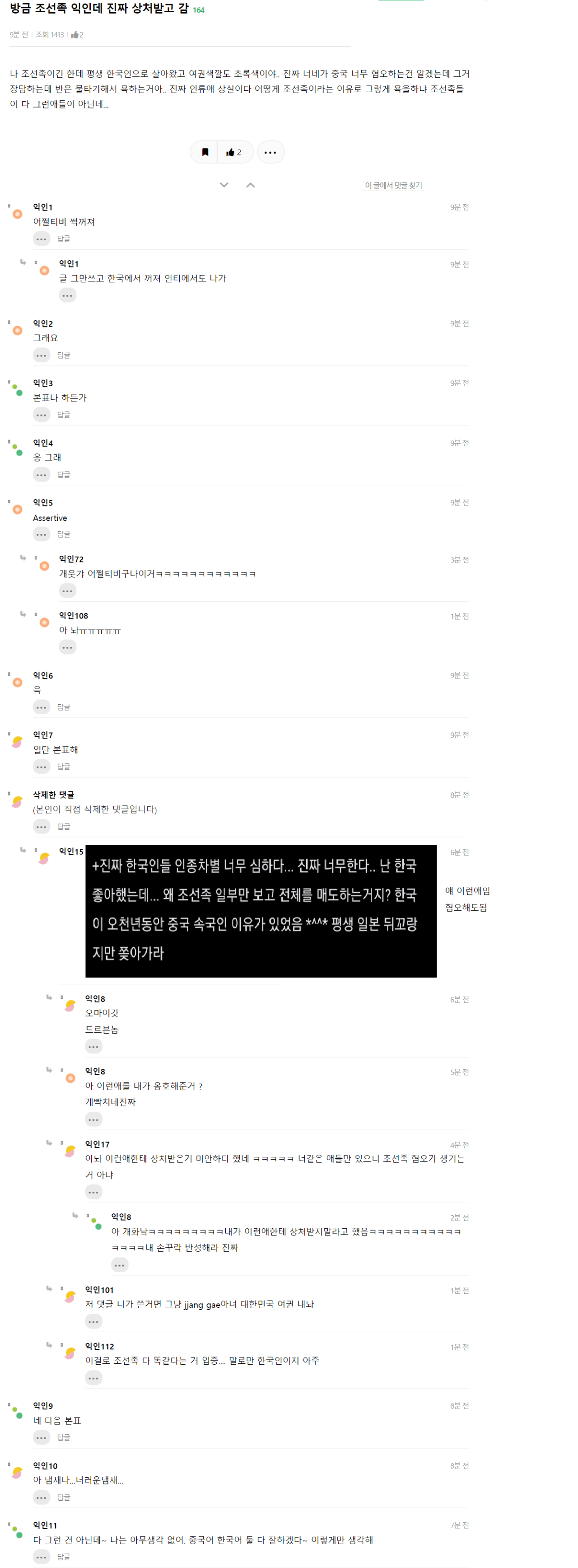 인티에 나타나 하소연하는 조선족