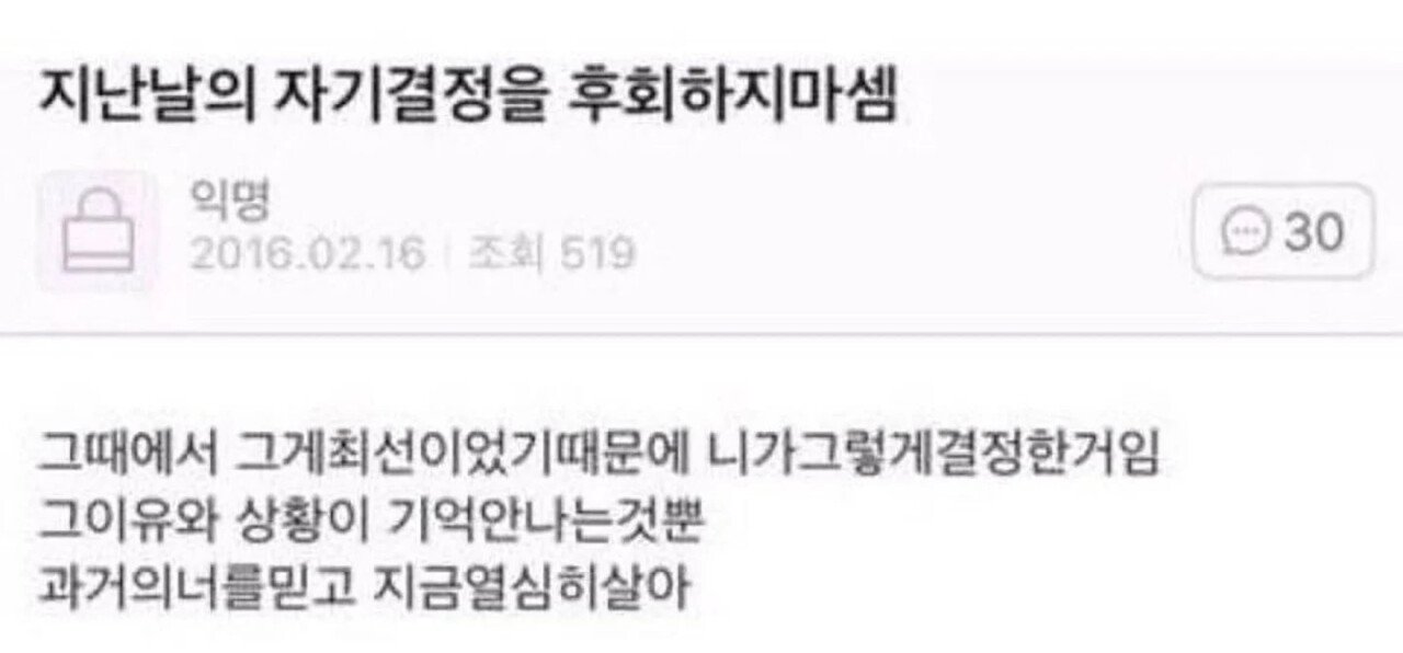 지난날의 나의 결정을 후회 하지 맙시다!