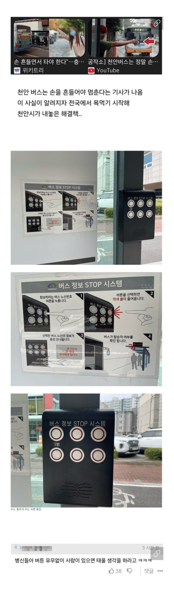 천안 버스 신기술 시연정류장이 어이없는점