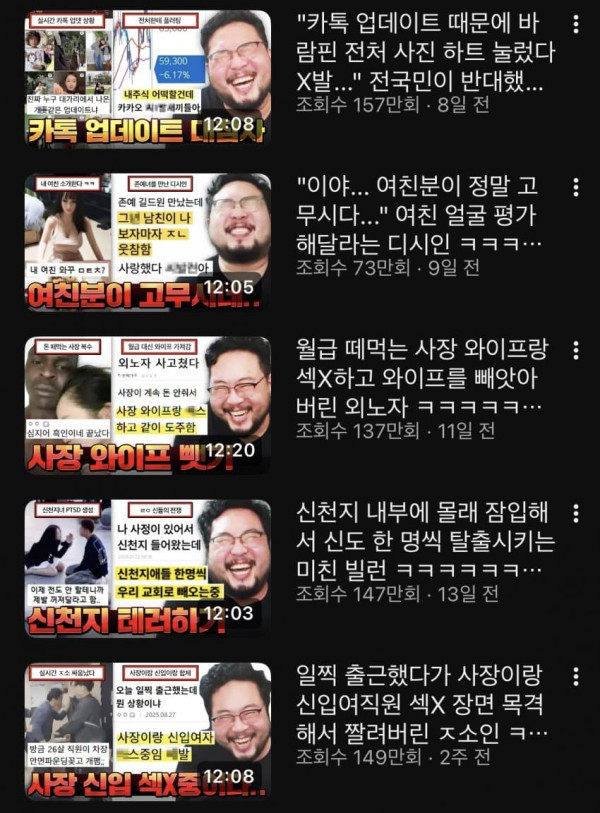 최근 유튜브 조회수가 쯔양급이라는 123만 유튜버 ㄷㄷ 작성자 정보 호날두꼬추 작성 작성일 2025.10.08 21:13 컨텐츠 정보 22 조회 0 추천 0 비추천 목록 본문 날먹 GOAT 0 추천 0 비추천 관련자료 이전 일자리 잡아서 기분 좋은 흑형 작성일 2025.10.08 21:20 다음 부모에 키워준 비용 갚으려 유흥업소 뛰어든 H컵 법대생… 작성일 2025.10.08 21:06 댓글 0 등록된 댓글이 없습니다. 로그인한 회원만 댓글 등록이 가능합니다. 목록