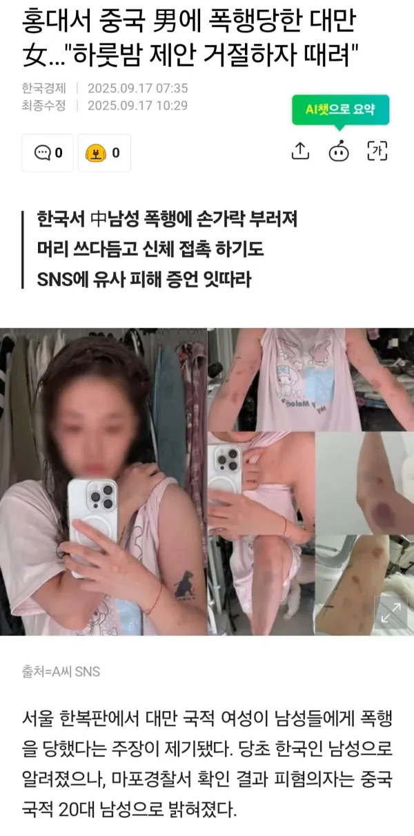 클럽에서 한남에게 맞았다던 대만여자...진실