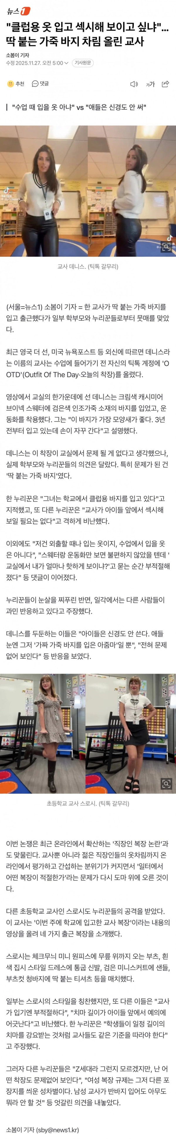 클럽용 옷 입고 섹시해 보이고 싶냐…딱 붙는 가죽 바지 차림 올린 교사