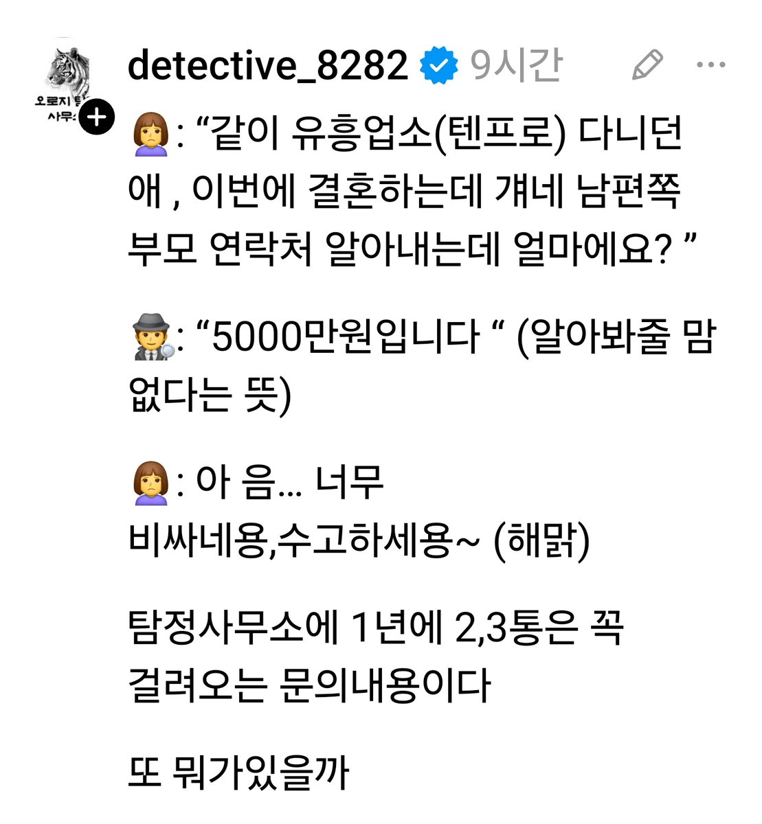 탐정사무소에 은근히 자주 온다는 문의 내용