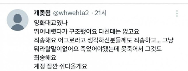 한강 투신 인증하는 트짹이
