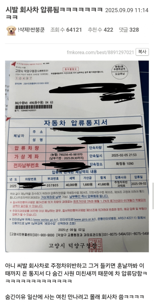 통지서 숨기지말고 걍 계좌입금하면 몰랐겠구만