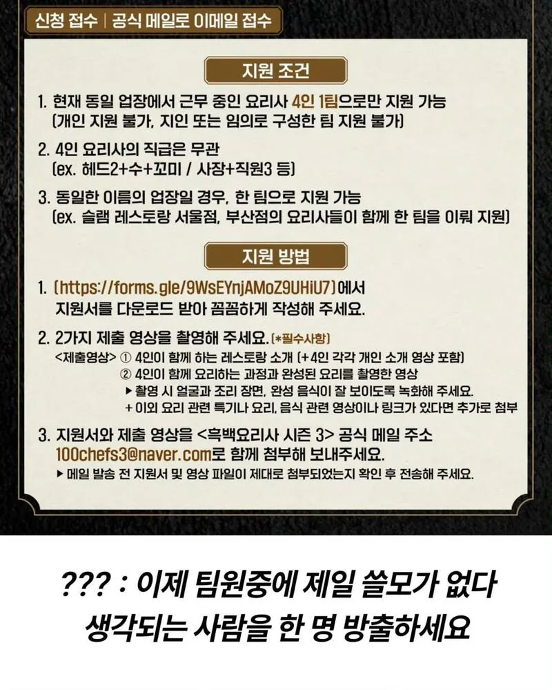 흑백요리사3 팀 모집