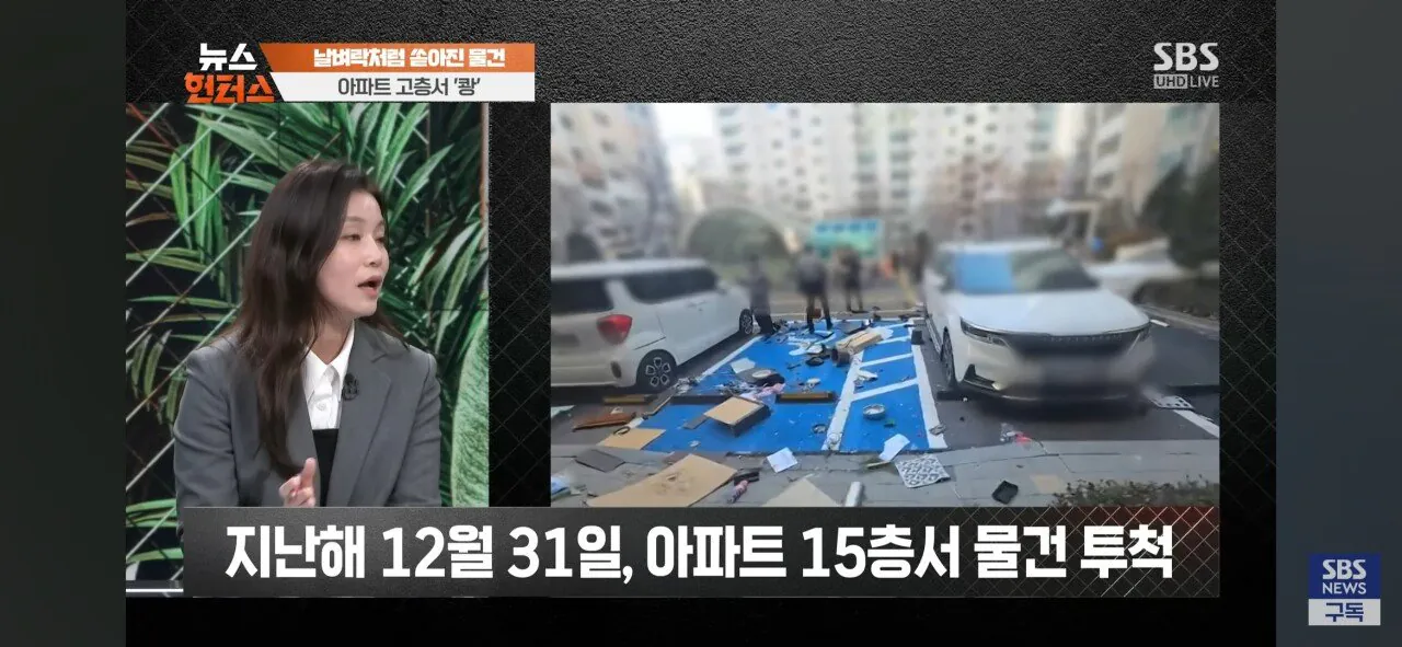 15층 아파트에서 밖으로 물건 던지는 미친ㄴ
