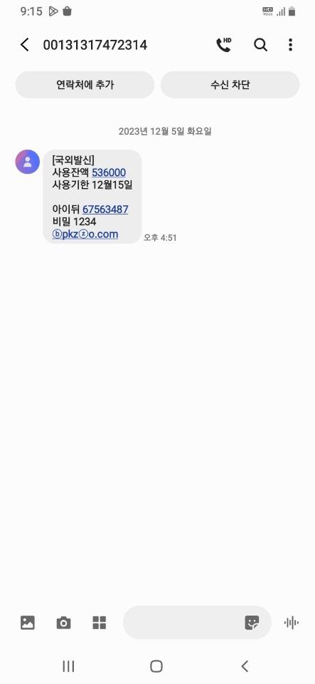 혹시라도 같은 문자 받으신 분들, 절대 하지 마세요.
