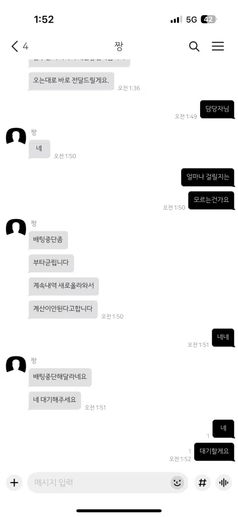 그 뒤로 계정 강제탈퇴시켜버림. 이런 새X들 꼭 조심해라.