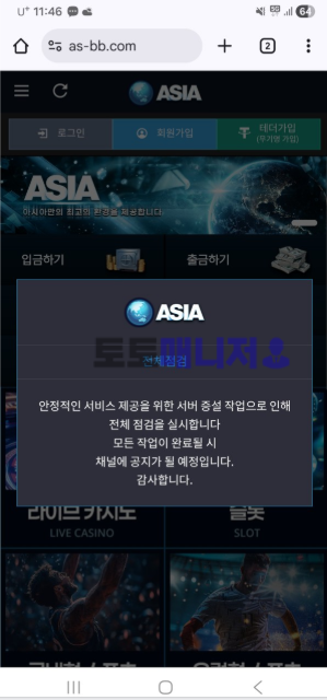 들어가면 아시아 라는 사이트 나오는데 전에랑똑같이 점검중 돈 받을수 있을라나